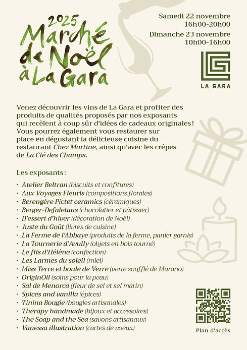 Nous avons le plaisir de vous inviter au Marché de Noël de la Gara!
